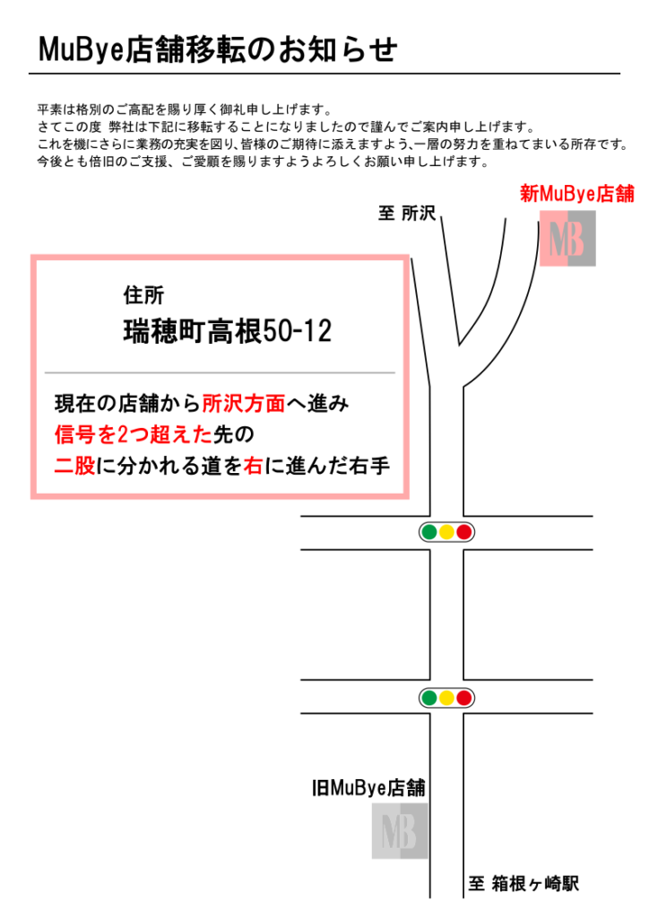脱毛&眉毛サロンMuByeは西多摩郡瑞穂町高値270にあります。高値通りを箱根ヶ崎駅方面に進み右手側にあるのですが、道路に面しておらず少し奥に入った場所にあるので少し分かりづらいかもしれません。